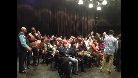 Home Cold Reading sponsored by Cincinnati Playwrights Initiative, November 2014. Home Cold Reading Actors (fabulous…from left to right) and CJ (playwright… middle). Narrator (Sheila Smith), Naomi (Deborah Brock-Blanks), Vanilla (Aiden Sims), Desmond (Rico Reid), Ruth (Judy Shaw), Craig (Malcolm Casey), Brother Goodman (Gary Thompson).
